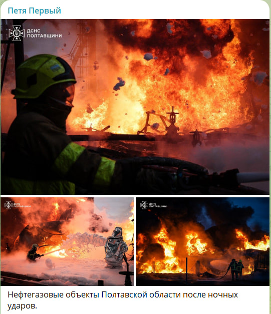 По Киеву внешние источники и отчёты местных жителей подтверждают множественные взрывы и пожары в нескольких районах города. <…> Есть данные об уничтожении штабного бункера вместе с офицерами, в том числе из стран НАТО. Есть уничтоженный цех, производящий двигатели для БПЛА около Жулян. В Черкасской области критические повреждения получила одна из крупнейших железнодорожных развязок на Украине.