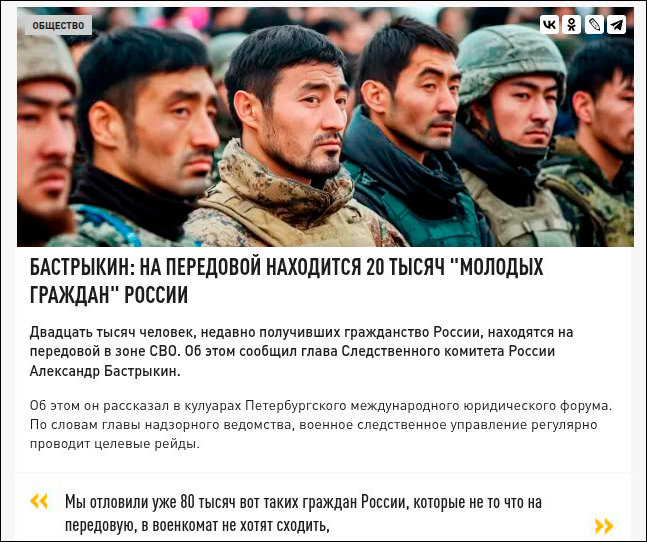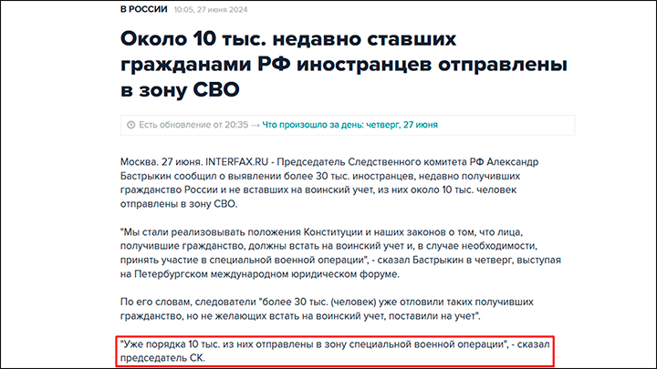 Одних только уклонистов от воинского учёта среди "новых граждан" десятки тысяч, как заявлял глава Следкома Бастрыкин. Скриншот страницы сайта interfax.ru