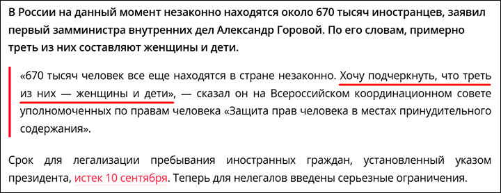 Цифры не сходятся? Да нет. Просто поток иммигрантов такой большой, что высылай, не высылай — их количество продолжает увеличивается. Здесь претензию можно (и нужно) предъявить другим органам власти, которые до сих пор затягивают ситуацию с внедрением организованного набора и ужесточением подходов к привлечению иностранной рабочей силы.