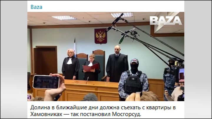 Момент, когда Лариса Долина покидает квартиру в Хамовниках. Видео: ТГ-канал @argumentiru