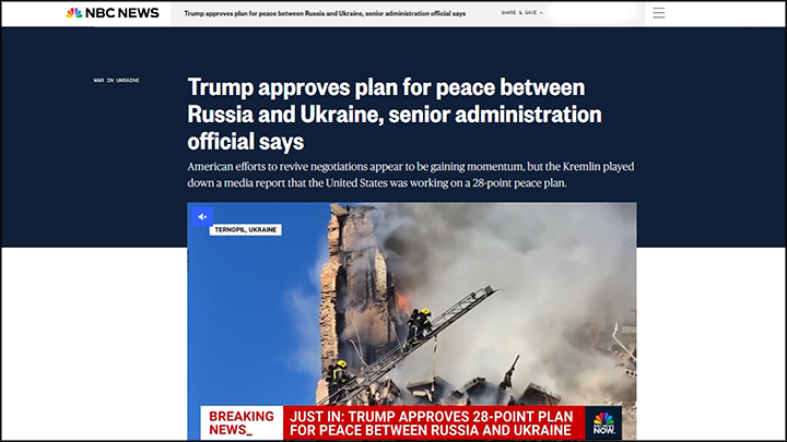 По версии NBC News, Трамп одобрил "план по установлению мира между Россией и Украиной". Скриншот: NDC News