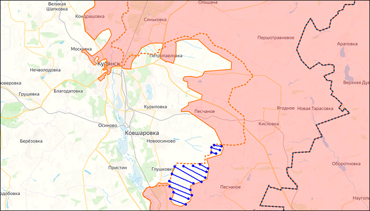 А вот осинтеровские карты показывали несколько иную картину: украинская группировка действительно была прижата к реке Оскол, но ни о каком полноценном окружении там речи и близко не шло. Информация о "мгновенном обрезании" наводимой украинской логистики, переданная Верховному, тоже оказалась далека от истины. В противном случае непонятно, каким образом и на каких запасах украинские войска продолжают удерживать плацдарм на восточном берегу Оскола, об изоляции которого военные доложили президенту чуть более года назад.
