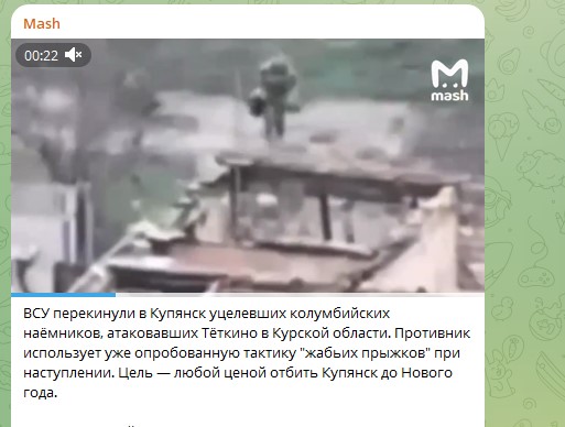 Напомним, сегодня канал Mash сообщил о переброске в Купянск уцелевших колумбийских наёмников, атаковавших Тёткино в Курской области. Противник использует уже опробованную тактику "жабьих прыжков" при наступлении. Цель – любой ценой отбить Купянск до Нового года.