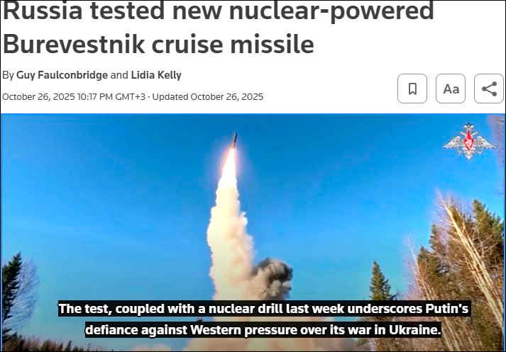 Недавние испытания российских ракет "Буревестник" пугали Запад не меньше, чем глава МИД. Скриншот: "Рейтер"