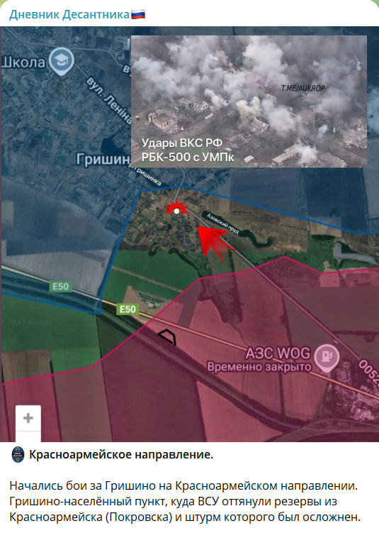 Также наши штурмы расширили зону контроля севернее Мирнограда, взяв важную высоту. В Красноармейске русские бойцы зачистили карман в районе АТП и Райавтодора, ликвидировав очаги сопротивления.