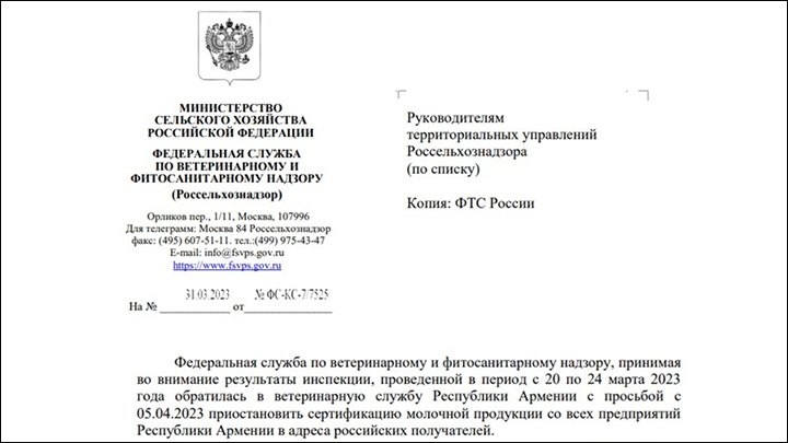 Россельхознадзор остужает пыл. Скриншот страницы документа Россельхознадзора