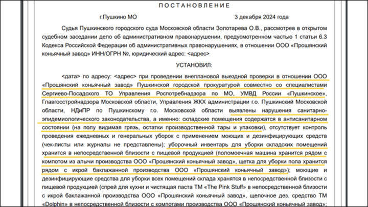 На заводе ранее уже проводилась проверка – обнаружили полную антисанитарию//Скриншот страницы решения суда