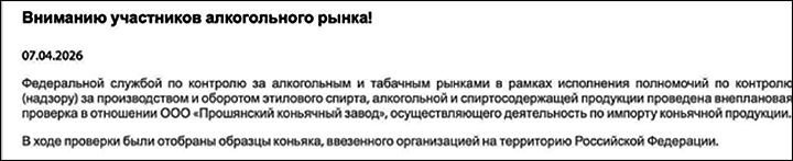 Лидер оказался суррогатом. Скриншот: Прошянский коньячный завод