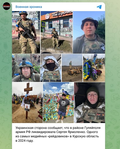 Неожиданное возмездие за попытку оккупации и военные преступления в Курской области пришло к одному из "самых медийных рейдовиков" ВСУ. Об этом сообщают украинские и отечественные источники. По предварительным данным, в районе Гуляйполя Вооружённые силы России ликвидировали Сергея Ярмоленко. Во время нападения на Курщину Ярмоленко больше других делился "фоточками" в соцсетях и хвалился преступлениями. Также Ярмоленко стал одним из тех боевиков, которые в первую очередь "взяли штурмом" "Пятёрочку" в приграничье.
