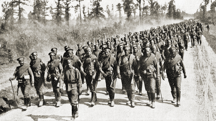 Русские войска отправляются на фронт. Фото: National Geographic Magazine/George H. Mewes/public domain/ wikipedia.org