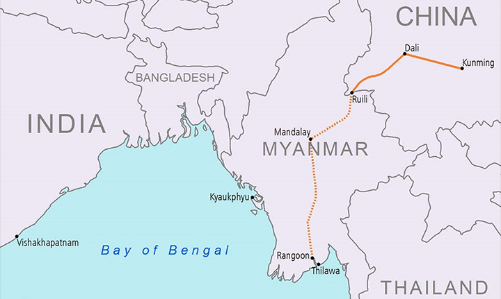 Это глубоководный порт в мьянманском штате Ракхайн, который построил Китай, чтобы уменьшить свою торговую зависимость от Малаккского пролива — крупной торговой артерии, находящейся под защитой США и соединяющей Индийский и Тихий океаны. Китай построил энергетические трубопроводы из Кяукпью, которые заканчиваются в провинции Юнань, где можно перерабатывать нефтепродукты.
