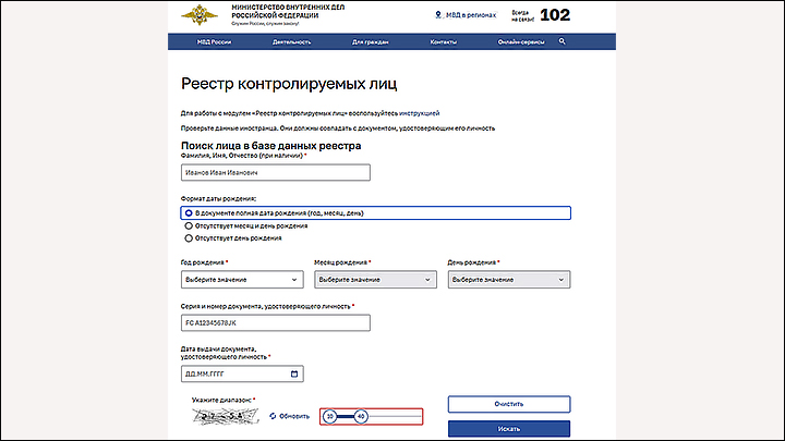 Реестр контролируемых лиц создан во исполнение Федерального закона от 08.08.2024 № 260-ФЗ. Скриншот страницы сайта мвд.рф