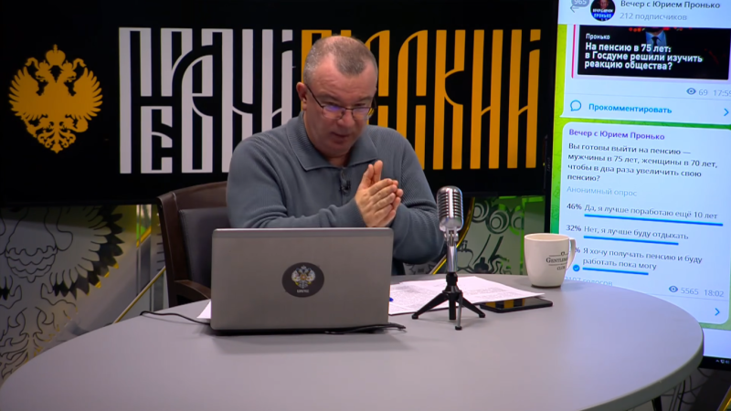 Уже доступен премьерный выпуск программы "Вечер с Юрием Пронько". Экономический обозреватель "Первого русского", ведущий передачи Юрий Пронько теперь анализирует самые горячие инфоповоды не только с экспертами, но и с вами, зрителями и слушателями Царьграда. Теперь можно задавать вопросы, которые будут озвучены в эфире, и в режиме реального времени участвовать в опросах в Telegram-канале "Вечер с Юрием Пронько".