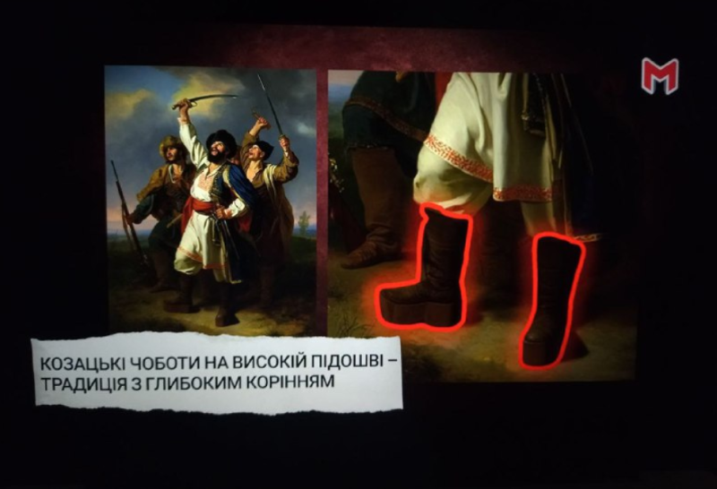 Сапоги на очень высокой подошве изобрели запорожские казаки в 17 веке. Они позволяют запугать врага, делая человека визуально очень высоким. Исконно украинское психологическое оружие прямиком из прошлого,