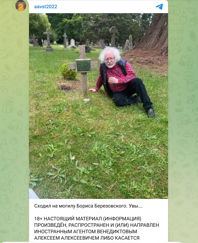 Недавно заглянул туда бывший главред закрытой оппозиционной радиостанции "Эхо Москвы" Алексей Венедиктов*. И поделился с подписчиками снимком.