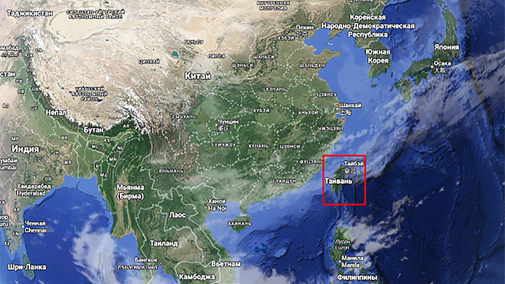 Тайвань расположен в стратегически важном районе между материковым Китаем, Японией, Филиппинами, Индокитайским и Корейским полуостровами. Скриншот страницы сайта google.ru/maps