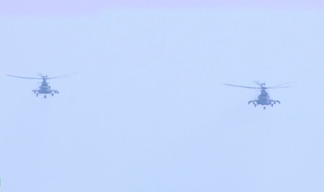 10:54. Воздушный парад - в небе видны вертолеты из Каменска-Уральского.
