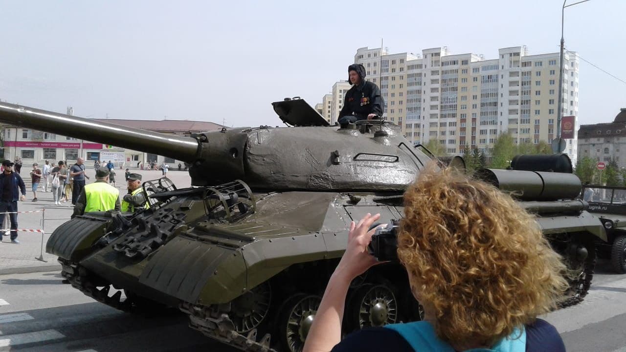15:30. Шествие завершилось. Известный летчик, герой России Дамир Юсупов сегодня сменил самолет на танк.