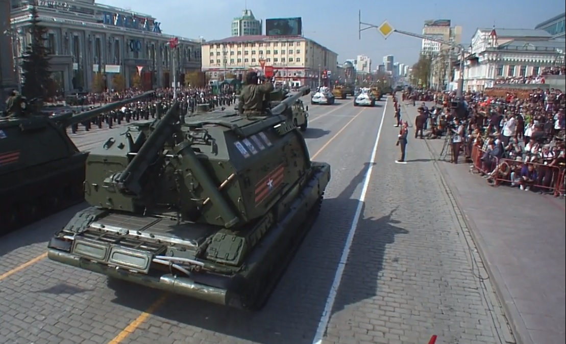 10:49. На площадь выехала техника войск ПВО. Это зенитно-ракетные комплексы.